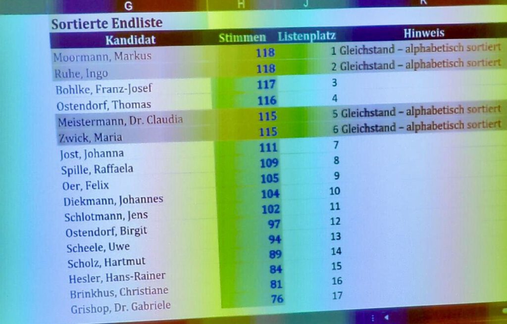 Erstmalig für den Gemeinderat kandidieren neben Markus Moormann Chrstiane Brinkhus, Johanna Jost, Birgit Ostendorf, Uwe Scheele, Jens Schlotmann, Hartmut Scholz und Raffaela Spille. Alles Namen, die in der Bakumer Vereinswelt einen Klang haben. Sie sollen Werner Beckermann, Christoph Eiken, Andrea Hoping-Bokern, Helmut Quatmann, Tobias Ruhe und Dennis Vaske ersetzen, die nicht wieder für den Gemeinderat kandidieren werden. Erneut kandidiert auch Dr. Gabriele Grieshop für den Gemeinderat, die bei der letzten Kommunalwahl es nicht in den Gemeinderat schaffte.